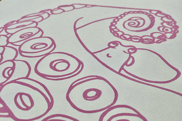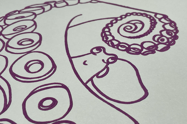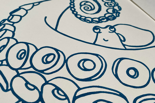 Einfarbiger Linoldruck "Otto the curious octopus" 💕