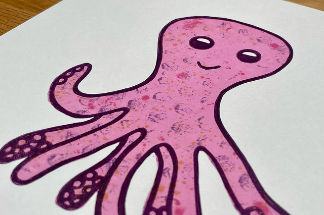💕 Für diesen süßen Druck habe ich zwei Druckplatten geschnitten und diese mehrfarbig eingefärbt.