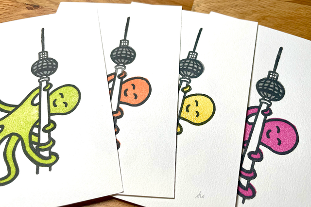 🐙 Für diesen süßen Druck habe ich mehrere Stempel geschnitten und diese je nach Farbvariante entweder ganz mit einer Farbe oder mittels partieller Einfärbung mehrfarbig eingefärbt. Schau gern bei meinem Instagram (@cuteOctopusPrints) vorbei, wenn du Interesse am Entstehungsprozess hast ☺️